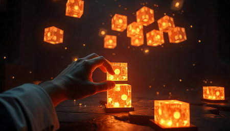 Hand Manipulating Glowing Cubes