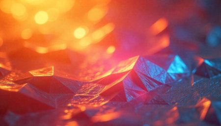 Abstract faceted texture background with bokeh lights and reflections