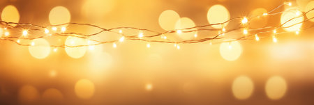 golden christmas lights bokeh background with copy space.