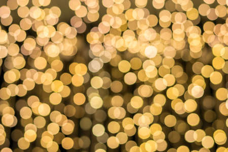 Blurred focus of circular bokeh lights in warm golden tone for abstract background. Seasons greetings, Merry Christmas and Happy New Year celebrations concept.