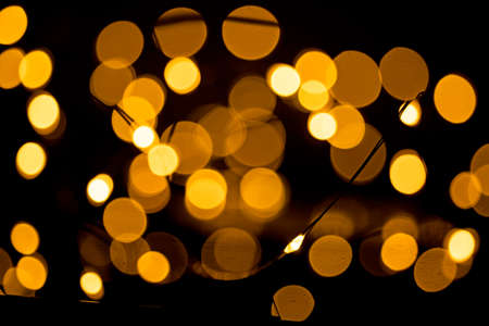 Abstract circular bokeh background of Christmaslight. bokeh from garlands. background for screensaver. Defocused lights. Blurred bokeh with yellow color lights