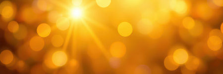 An abstract background composed of numerous blurred golden and yellow bokeh lights. The out-of-focus orbs create a luminous and vibrant effect, evoking a sense of warmth, celebration, and festivity. is conveying themes of joy, holidays, or a general feeling of bright, positive energy. The soft, shimmering of the lights makes it a versatile for various creative projects.