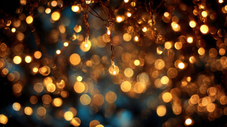 Bright golden bokeh lights create a warm and festive atmosphere in a cozy setting during the holiday season