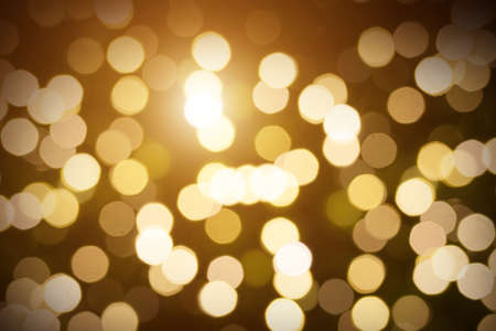 Light bokeh defocused background. Blurred photo of Christmas lights. golden light effects. holidays, background and illumination concept
