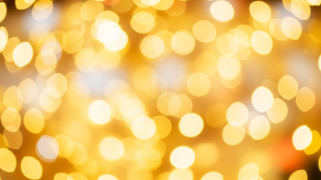 A mesmerizing display of golden bokeh lights creates a warm and inviting abstract background, perfect for adding a touch of magic to any festive occasion.