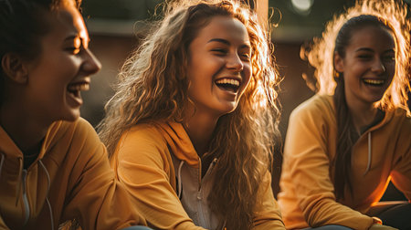 Group of young women laughing happily, dressed in sportswear. Sports, fitness and friendship. Generative Ai