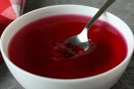 Homemade fruit jelly. Delicious berry dessert. Copy space. Close-up.