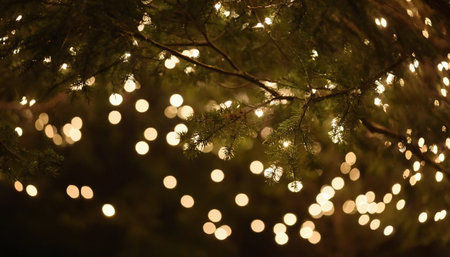 A captivating night scene featuring warm glowing lights among blurred bokeh, creating an enchanting atmosphere perfect for serene moments or festive settings.