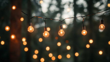 Defocused string lights create dreamy bokeh effect. Adding ambient glow to photography and backgrounds.