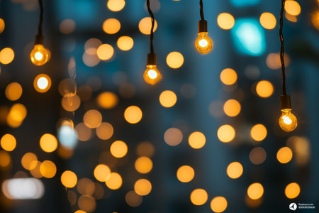A mesmerizing collection of warm string lights with a beautiful bokeh effect, creating a cozy atmosphere perfect for indoor events, celebrations, and gatherings.