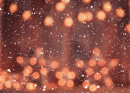 Christmas and New Year background with snow and bokeh lights.