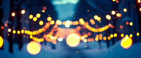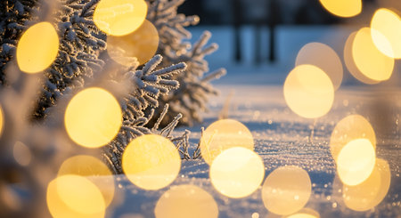 Winter night bokeh scene with soft golden lights, ideal for festive holiday celebrations.