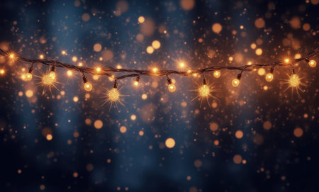 Christmas lights on dark background with bokeh effect and copy space