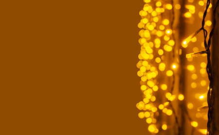 Abstract circular bokeh background of Christmaslight. bokeh from garlands. background for screensaver. Defocused lights. Blurred bokeh with yellow color lights
