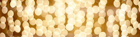 Golden bokeh lights. Christmas or New Year festive background. Xmas lights. horizontal orientation.