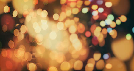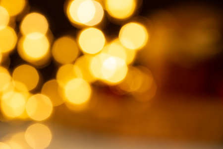 Blurred focus of circular bokeh lights in warm golden tone for abstract background. Seasons greetings, Merry Christmas and Happy New Year celebrations concept.