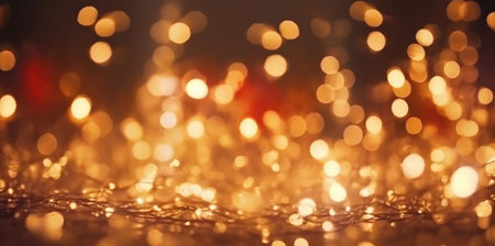 A mesmerizing abstract background of out-of-focus golden bokeh lights creating a warm and festive atmosphere perfect for celebrations.