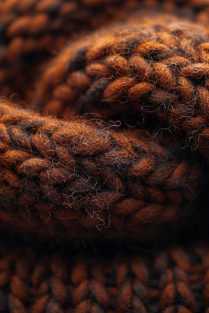 Knitted texture closeup, brown thread pattern, cozy winter background