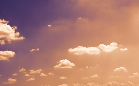 Sunset sky background with tiny clouds. Colorful sky background.