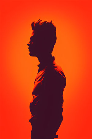 A man stands silhouetted against a stunning sunset, his profile glowing with a radiant energy.