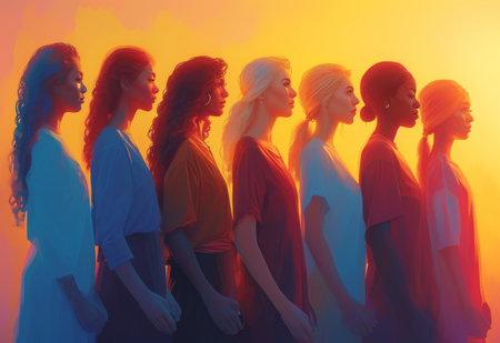 Group of diverse silhouettes of people standing together in unity, symbolizing inclusivity and diversity, social justice campaign