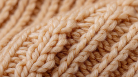 Textured knitted background with beige yarn, soft surface, and cozy patterns.