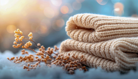Detailed view of woolen fabric texture in soft focus, emphasizing warmth and comfort