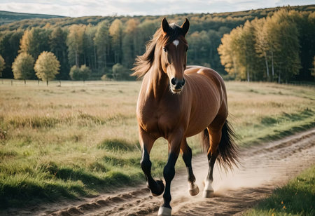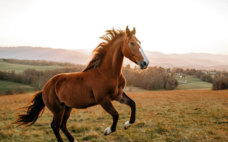 Elegant Horse in Mid-Gallop with Powerful Movement