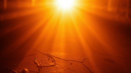 Light beams shining on cracked ground, symbolizing hope, new beginnings, and rebirth. Ai generated image