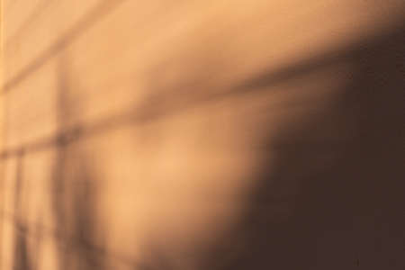 Orange concrete facade with sunlight shadow background. Indoor shade from window light on texture pastel wall.