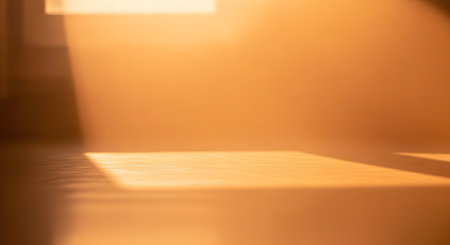 Soft sunlight casts gentle shadows through window panes, creating warm patterns on the floor in an indoor setting
