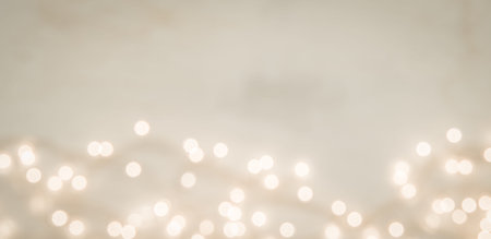 Christmas elegant background. Blurred abstract art lighting backdrop. Luxury glamorous shiny festive soft wallpaper. Stylish, trendy and posh abstraction. Chic feminine neutral nude beige background.