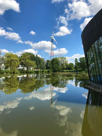 View of the Am Wall Windmill in Bremen, Germany during a coudy day