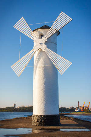 Swinoujscie, West Pomeranian - Poland - June 14, 2021: View on windmill Stawa Mlyny. Charateristic navigational mark