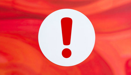 A red exclamation mark symbol on a white circle set against a swirling abstract red and orange background.