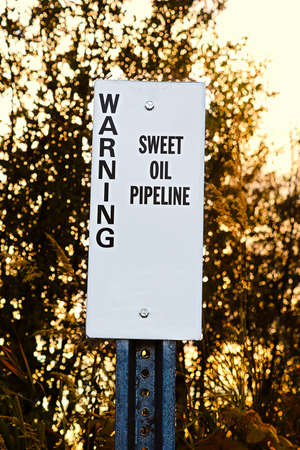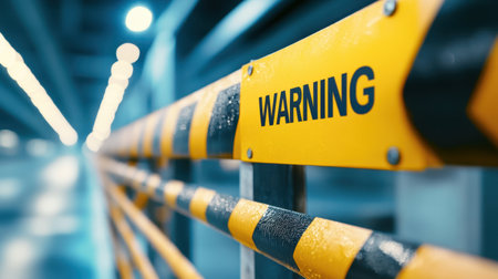 In a sharp focus capture, a vividly striped barrier displays a warning sign, emphasizing safety. This portrayal highlights the importance of caution in an urban modern environment.