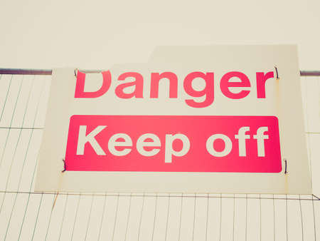 Vintage looking Danger keep off traffic or construction site sign - isolated over white