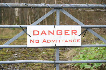 warning sign text in red grunge. Concept image for caution dangerous areas.
