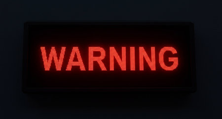Extreme close up on a glowing red triangular alert and an exclamation mark on a phone, indicating a critical system breach with cybersecurity risk