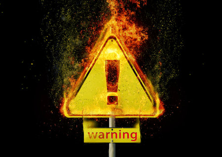 Triangle Warning Icon with Exclamation Mark in Orange Smoke on Dark Background