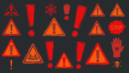 Red warning sign caution icon danger symbol exclamation mark triangle alert stop sign hazard signal safety notice emergency label red hand