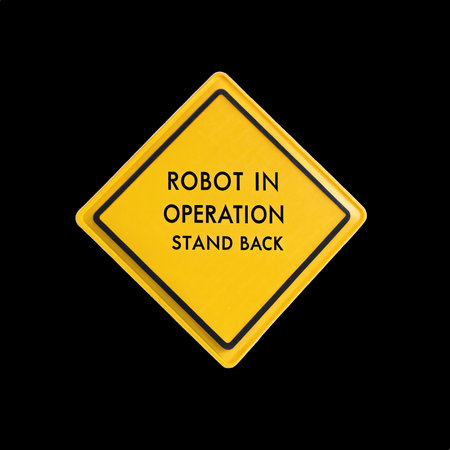 Robot in operation stand back warning sign on transparent background