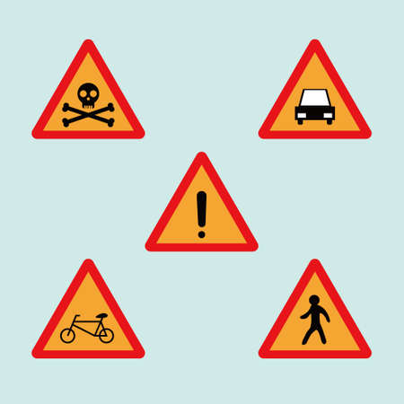 Danger warning sign set. Caution signpost. Vector. Attention information.