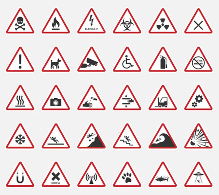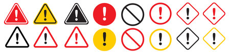 Danger sign. Warning symbol. Attention icon. Set of danger warnings. Vector illustration.