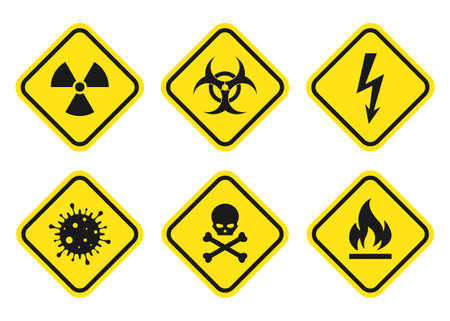 Warning signs set - danger, radiation, biohazard, death, voltage, flame, virus