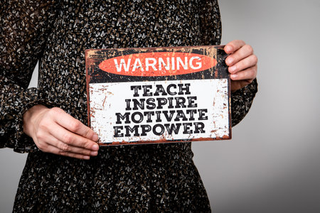 Woman Holding Inspirational Sign with Motivational Message to Teach, Inspire, Motivate, Empower Others