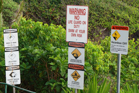 Warning signals in Waianapanapa State park, Maui island, Hawaii, USA