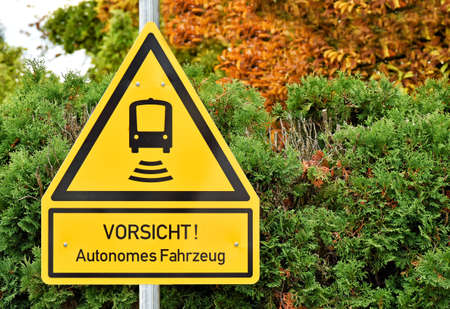 Warning against autonomously driving vehicles in German language (Caution! Autonomous vehicle)