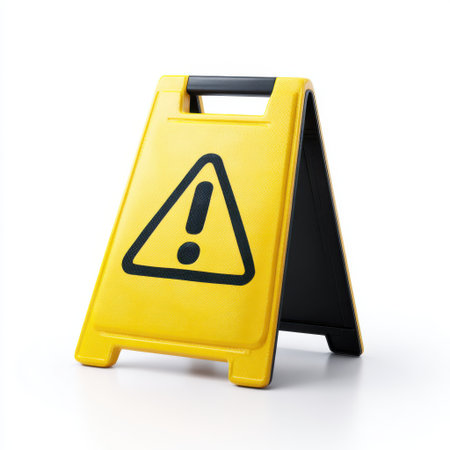 Yellow warning sign stands isolated on a clean background, alerting individuals to potential hazards and promoting safety in various environments.