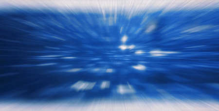 This digital artwork presents a dynamic starburst effect, featuring radiating lines of blue and purple light. The composition suggests a sense of rapid movement within a dark, undefined space. The artwork